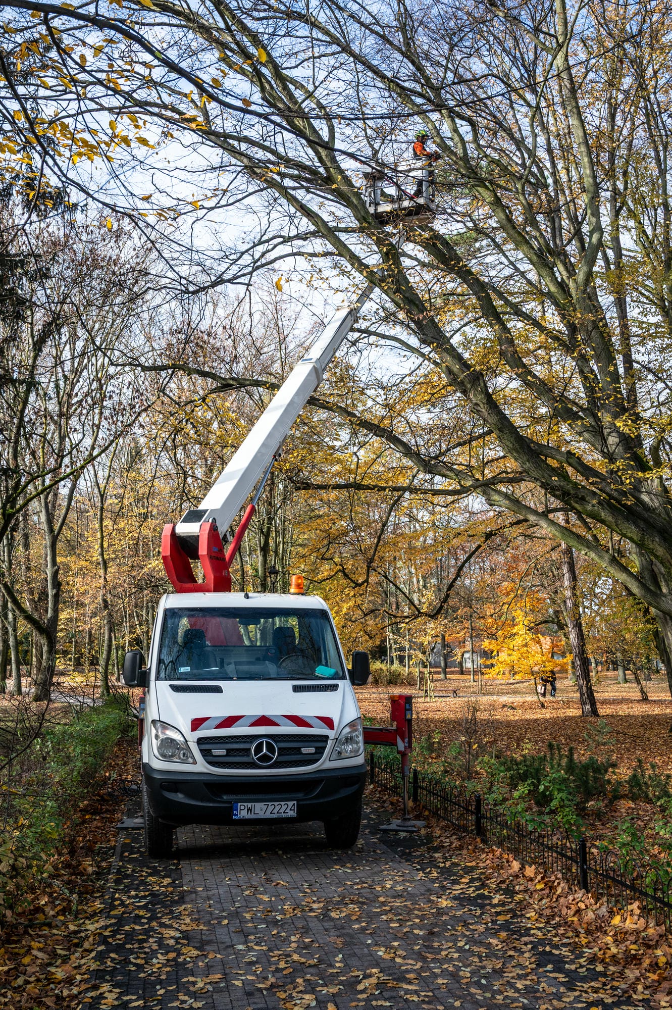 W Parku Miejskim w dalszym ciągu trwają cięcia pielęgnacyjne w koronach drzew. Dzięki tym działaniom dbamy o bezpieczeństwo przechodniów oraz o dobrą kondycję drzew.