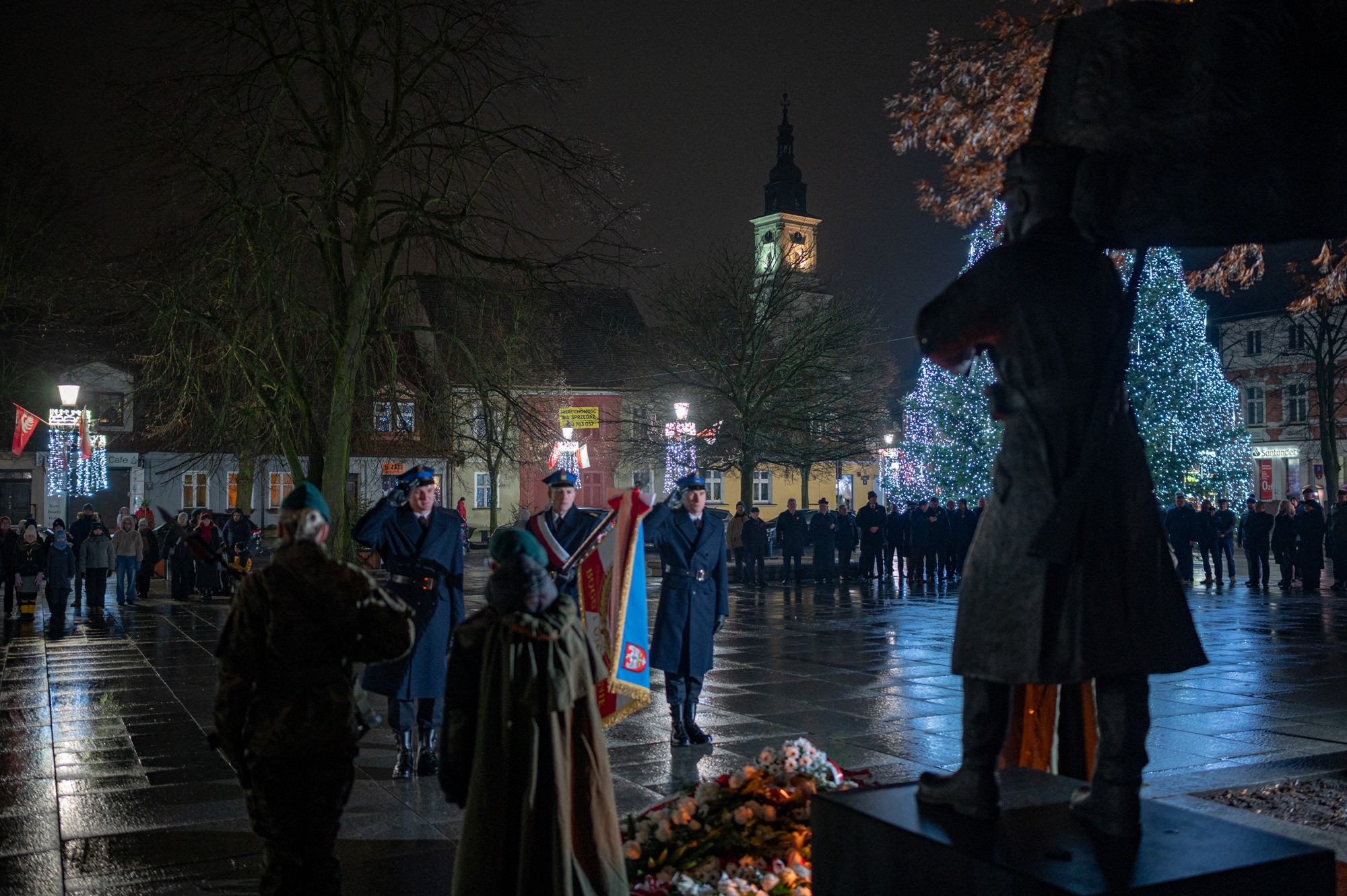Następnie uczestnicy przeszli na rynek, gdzie odśpiewano hymn i złożono kwiaty pod Pomnikiem Powstańca Wielkopolskiego.