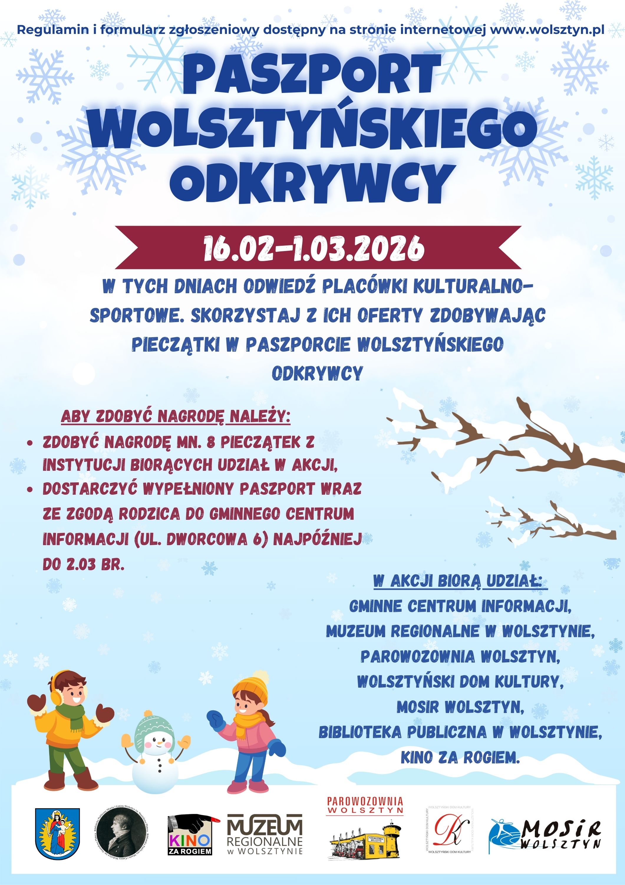 Odwiedź wolsztyńskie miejsca kultury, sportu i promocji, zbierz minimum 8 pieczątek i odbierz atrakcyjny upominek!
